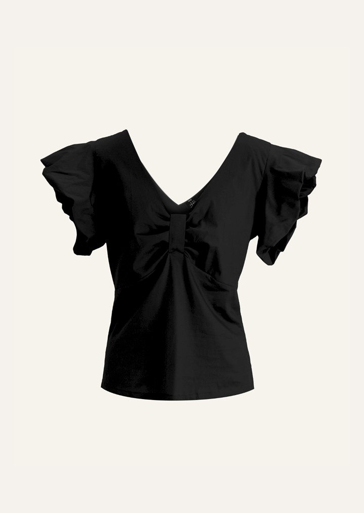 Blusa elaborada en popelina stretch, con drapeado en el pecho.