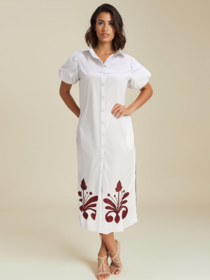 Este elegante vestido combina la suavidad natural del algodón con la elasticidad del spandex, brindando un ajuste cómodo y favorecedor al cuerpo. Su diseño atemporal se realza con delicados bordados que aportan un toque artesanal y femenino. Ideal para ocasiones casuales o semi-formales, es una prenda fresca, ligera y versátil que resalta por su confección cuidada y detalles únicos.