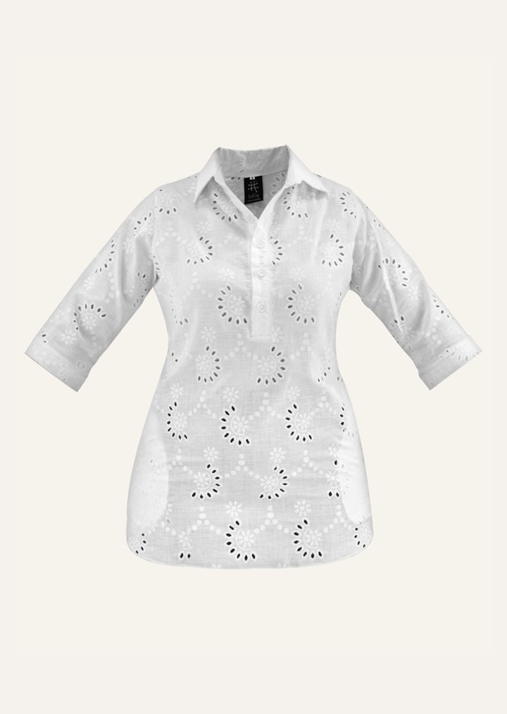 Este camisero de algodón hoja rota es una prenda versátil y fresca, perfecta para climas cálidos y días relajados. Su tejido de algodón con textura tipo hoja rota le da un acabado delicadamente natural, aportando un toque artesanal sin perder elegancia.
