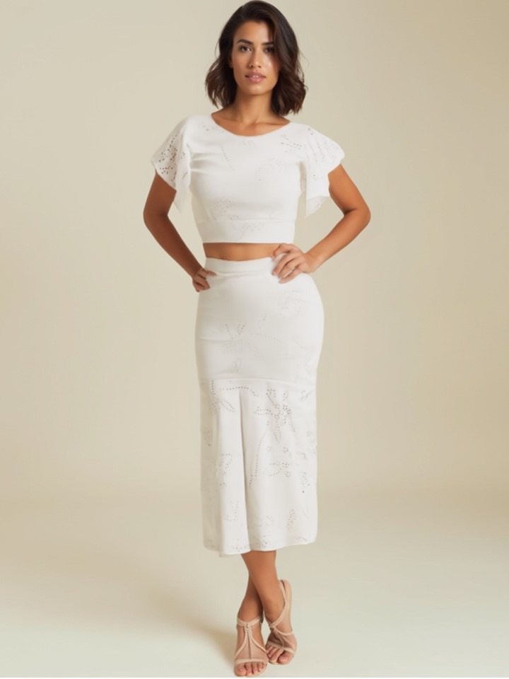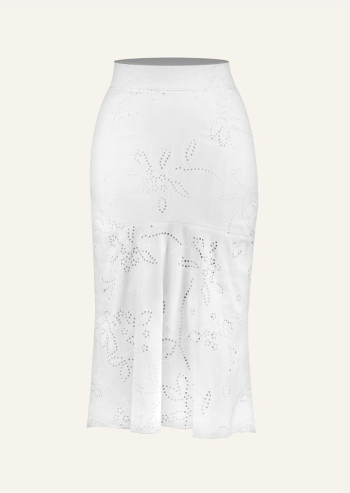 Falda larga elaborada en algodón con textura tipo hoja rota, de acabado suave y ligero. Está completamente forrada para mayor comodidad y un mejor ajuste al cuerpo. Su diseño combina frescura y estructura, ideal para climas cálidos y para lograr un look natural y femenino.